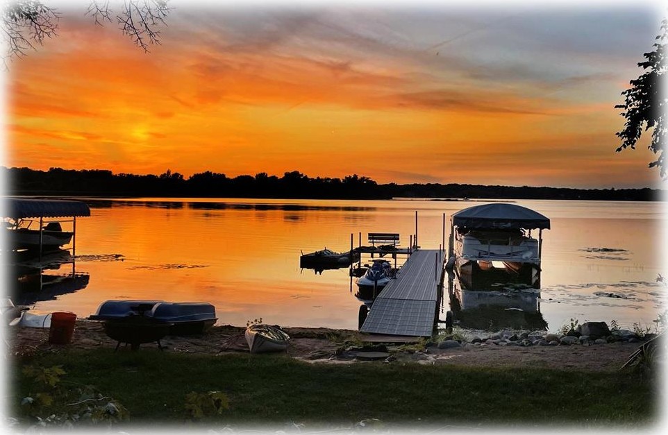 Welcome to this amazing Eagle Lake home offering a sandy shoreline, sunsets, bonfires, boating, fishing, ice skating all right out your door. Located on a quiet cul-de-sac street with multiple connections to miles of serene trails ~ nature enthusiasts dream home! Enjoy hours of relaxation in the 3-season porch, on the deck or patio area overlooking the beautiful lake, terraced backyard and canopy of mature trees. Kitchen offers quality cabinetry, breakfast bar with seating and adjacent spacious dining. Large living room with stunning stone floor-to-ceiling gas fireplace and dramatic ceiling details. 4 generous sized bedrooms, one with grand bay window seat. Freshly updated bathroom. Finished lower level walk-out. Garage offers convenient upper and lower level access into the home. Large laundry room with workshop/craft space. Quality appliances and mechanicals including a reverse osmosis system. Outdoor lakeside shed for all your extras is a plus! ENJOY LAKE LIFE EVERYDAY!